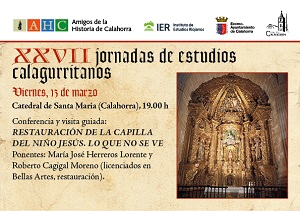 Día: viernes 14 de noviembre Hora: 20 h. Lugar: ermita de la Concepción Ponente: Ana Jesús Mateos Gil La edición de un nuevo libro siempre ha sido importante para la asociación Amigos de la Historia de Calahorra desde sus inicios hace casi cincuenta años, en esta ocasión, el próximo viernes 14 de noviembre, a las 20.00 h. en la ermita de la Concepción, presentaremos el libro “Construyendo Calahorra. La evolución urbana de la ciudad a través de la historia” con su autora Ana Jesús Mateos Gil, doctora en Historia del Arte e historiadora de Calahorra, iniciando así una nueva serie que llamaremos “Estudios” y que se complementan a Tesis, Anejos de Kalakorikos y Kalakorikos, todos ellos centrados en la historia de Calahorra. El libro cuenta con 408 páginas, 284 fotografías en color y en blanco y negro muchas de ellas inéditas aportadas por Archivo Municipal Fondo Fotográfico Bella, Fondo Instituto de Estudios Riojanos, Instituto de Patrimonio Español y particulares, y es un recorrido por la evolución urbana de Calahorra desde la Antigüedad hasta nuestros días. El libro se podrá adquirir al precio de 10 euros para los no socios de Amigos de la Historia el día de la presentación y en las diferentes librerías de la ciudad. Los socios podrán retirar un ejemplar de forma gratuita en la ermita de la Concepción el día de la presentación. La edición ha sido posible con la colaboración de la Dirección General de Cultura, Ayuntamiento de Calahorra, construcciones Calderón, Estudio 18, construcciones Vea, construcciones Miguel González, construcciones Uceda, Partido Socialista, Izquierda Unida, construcciones Beltrán, construcciones grupo LMB, Saralegui, construcciones Pontigo y Estproingar. ——————- Día: 15 de noviembre Hora: 16 h. y 17 h. Lugar: atrio de la catedral para visitar la sacristía de la catedral de Calahorra Guía: don Ángel Ortega Visita gratuita con inscripción previa en: amigosdelahistoriadecalahorra@gmail.com.